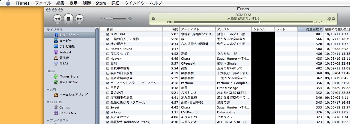 疲れたのでiTuneを起動し静かに音楽を聴いているのですが、